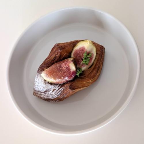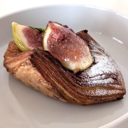1つ目は「無花果(イチジク)のデニッシュ」(税込340円)。自家製フランボワーズソースとカスタードを重ね、旬のイチジクを贅沢にトッピングした一品です。