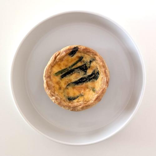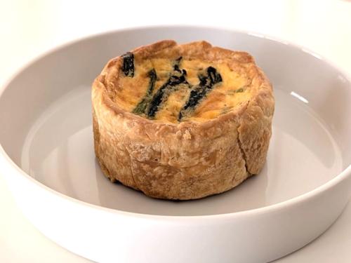 2つ目は「サーモンとほうれん草のキッシュ」(税込435円)。スモークサーモンとバターソテーしたほうれん草が入っており、ほどよい塩気とコクのある味わいを楽しめます。