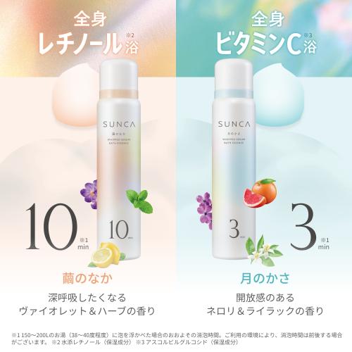 1日の中のちょっとした時間を、香りによって“無になる”贅沢なリラックスタイムに変えてくれる「SUNCA(スンカ)」。美容液成分たっぷり配合の泡で、全身ケアが叶う入浴料『SUNCA ホイップセラム入浴料』。