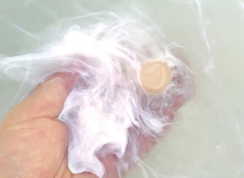 使い方は簡単。容器を上下に振り、卵くらいの大きさの泡を手に取った後、湯船に3~5個浮かべるだけ。特に乾燥が気になる方は、直接肌に塗って使用することもできます。