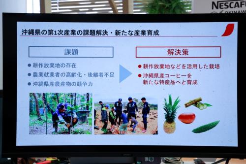 一緒にやってくれませんかと』という話をさせていただいて、ネスレさんはもともと世界的にコーヒー農家さんをサポートしていたという中で、日本ではまだそういう取り組みしてなかったんですけれども、一緒にやりましょうと言っていただいて、沖縄でのコーヒー栽培がスタートしました」と、経緯を伝えました。