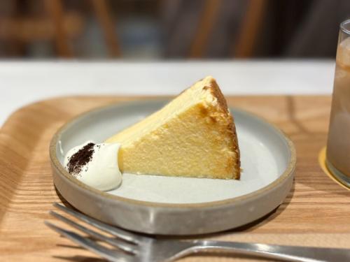 綺麗な断面のバスクチーズケーキはハサミポーセリンの器に乗っていてとてもおしゃれ!