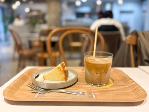 美味しそうなスイーツメニューがたくさんあって目移りしましたが、アイスカフェラテとバスクチーズケーキを注文しました。