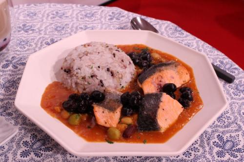 『サーモンと大豆のブルーベリーカレー』は鮭×ブルーベリーという意外な食べ合わせでしたが、トマトソースを使ったカレールーが全体の味に統一感を与える役目を果たしており、風味にまとまりがありました。嫌いな人がいない味だと思います。