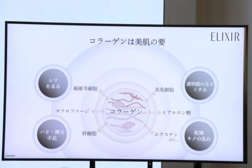 と語り、資生堂が40年以上にわたって行ってきたコラーゲンの研究について言及。