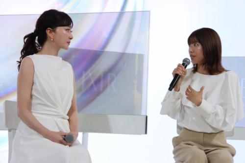本イベントには、エリクシールのナビゲーターに就任したタレントの若槻千夏さん、美容家の石井美保さんが登壇しました。