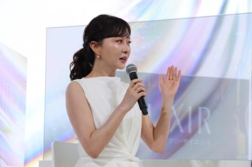 「母はエリクシールが一番好きと言っておりまして、我が家ではエリクシールに助けていただいています。そういった中で、私は美容家としてスキンケアの色々な研究だったりとか、製品の成分だったりとかを世の中にお伝えする中で、資生堂さんへ絶大なる信頼を私も置いてますし、日本が誇る研究の最先端をいっている。それ(その技術)が製品に落とし込まれているものなので、それを世の中にお伝えする役割として、今回こういった機会を与えていただけて、本当に光栄に思ってます。」