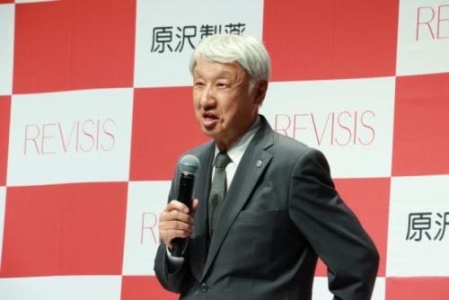今回開催された新CM発表会には、原沢製薬工業株式会社 代表取締役の原澤正純さんが登壇し、挨拶を行いました。