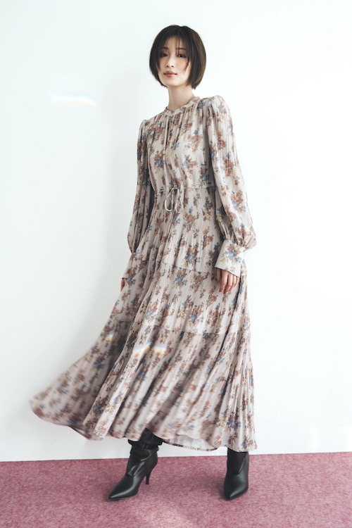 ヴィンテージライクなフラワープリントを施したワンピース。寒い時期にも着られるように透け感が程よいジョーゼット素材を使用。