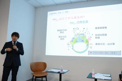 と、論文の内容を紹介しつつ、PM2.5の中の僅か3%を占める「ブラックカーボン(煤)」が悪影響を及ぼしていることを見出したのだと語りました。