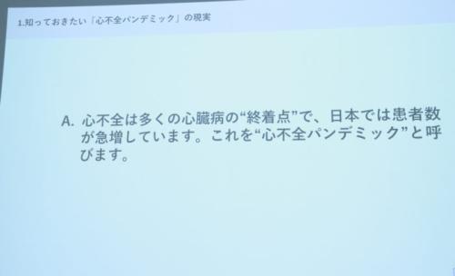 と、高齢化が進む現代社会で心不全患者が急増している「心不全パンデミック」についても言及しました。
