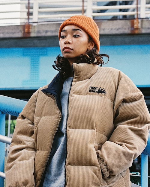 今回開催されるFIRST DOWN USAのポップアップストアでは、定番のバブルダウンジャケットをはじめ、タウンユースに取り入れやすいラップダウンジャケットなど、冬のコーディネートを彩るアイテムが勢揃い。