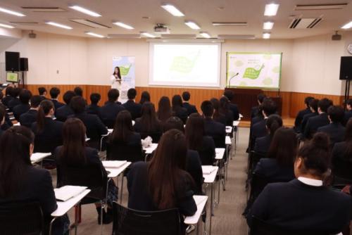 と時間を有効活用し、常に考えて行動してグローバルリーダーを目指してほしいと講演を締めくくり、生徒たちから大きな拍手が送られました。