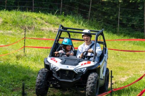 「フジヤマバギー」は、アップダウンの激しいコースをバギーで疾走! ハンドルを握ってアクセルを踏み込めば、気持ち良さも全開! 運転免許を保持する同伴者が付き添えば、11歳以上から運転が可能。乗車は6歳以上。