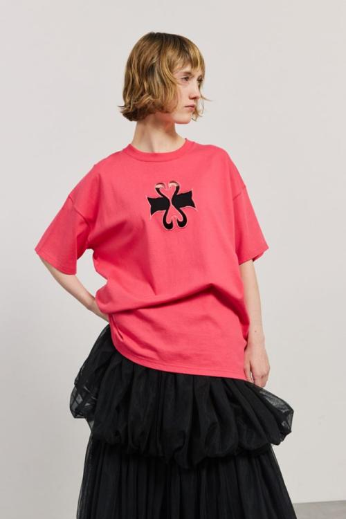 「SWAN Cutwork Big T-shirt」は、SORINのアイコンを胸のカット刺しゅうで表現したデザインTシャツ。展示会でも人気を博したアイテムで、スリットからインナーをのぞかせてレイヤードを楽しめる1枚。カラーはホワイト、ブラック、ピンク。