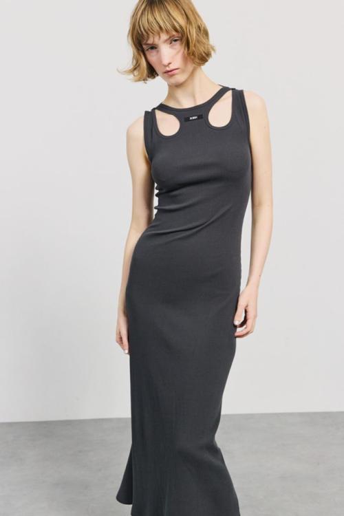 「Cut-out Tank Dress」は、アクセサリー不要なほどデザイン性が高く、1枚で決まるアイテム。程よく体型にフィットするアイラインのシルエットがスタイルアップも叶えます。カラーはブラック、ダークグレー。