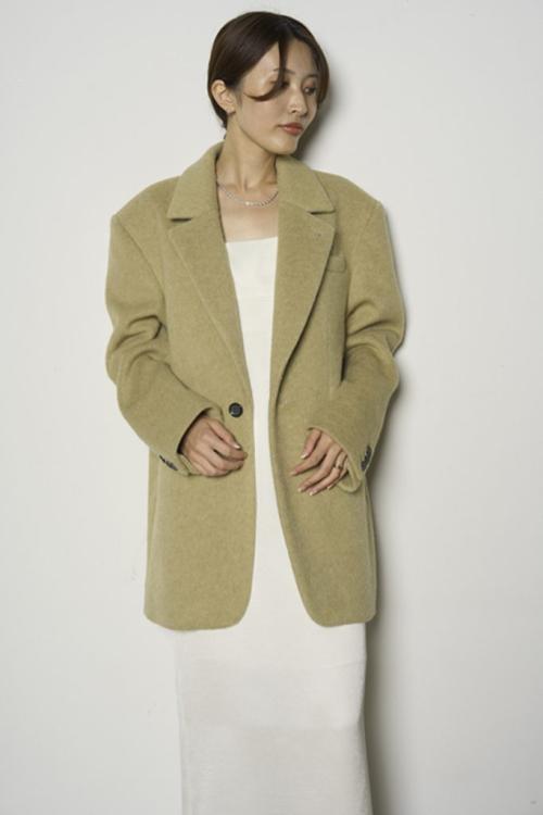 「シャギーシングルジャケット」は、コート感覚で着られるオーバーシルエットのロングジャケット。襟裏にボタンをあしらうことで防寒性を高めています。さらに襟を立てた時も着姿が美しく決まる仕様にこだわっています。パンツにもスカートにも合わせやすく、カジュアルから綺麗めまで幅広いスタイリングに活躍する一枚。表参道ヒルズ店限定カラーとしてオリーブカラーを用意。