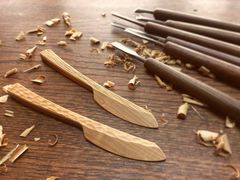 好きな彫刻刀を使ってノミ跡をつけ、オリジナルのバターナイフを完成させませんか。