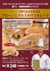 今回発売される“プルーンピューレ”を油脂の代わりに使用した「プルーンとクルミのマスカレード」は2016年に行われた「2016 カリフォルニア プルーン&カリフォルニアくるみ製パン・製菓 商品開発コンテスト」の応募総数124作品(ブレッド部門45作品、菓子パン部門42作品、菓子部門37作品)から選ばれたブレッド部門、最高金賞の受賞作品です。コンテストで審査員を務めた一般社団法人日本パン技術研究所 所長 農学博士の井上 好文氏は「今年のブレッド部門は少数精鋭で意欲的かつ魅力的な作品が多かった。最高金賞に輝いた作品は、プルーンピューレの特性による生地のもちっとした食感、くるみの独特な風味と食感を活かしつつ、チーズの塩味がピリッとした隠し味になって、大人の味に仕上がっている。」と語っています。