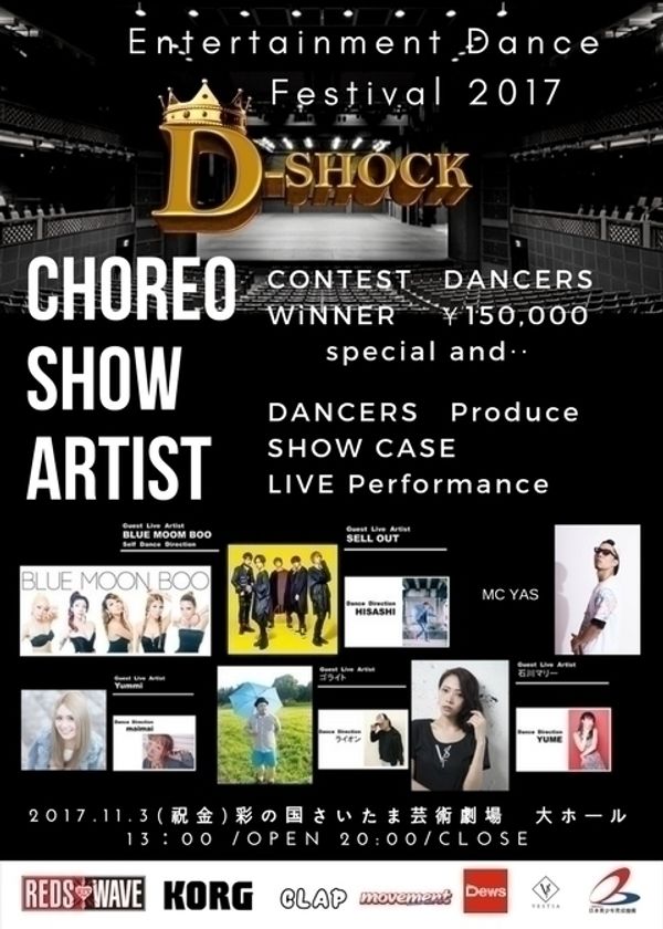アーティストライブなども開催され、バラエティに富んだ内容で、後援にはREDS WAVE、音楽メーカーのKORGなど多数のサポートも魅力です。近年ダンス人口は400万人を超え、義務教育の一翼も担うジャンルに進化を遂げているように、多くのダンサーに夢を与えるイベントを開催いたします。