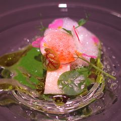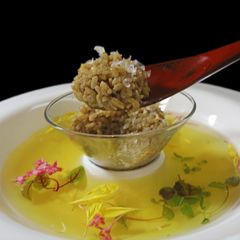提供しますお料理は、真空圧を使った『ガストロバック調理』や、食材をフリーズドライにできる『真空乾燥機』、蒸留装置の『ロータリーエバポレーター』、高速で食材を冷却できる『ショックフリーザー』など様々な機器を使ったアプローチによる、和洋中のジャンルに収まらないイノベーティブ・フュージョン系の創作料理です。