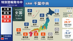 特別警報・警報発令時(天気予報を縮小し、上部と左部に表示)