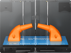 2つのモデルデータそれぞれに使用するヘッドを割り振ることで1つのモデルに2色のフィラメントでプリントが可能になります。