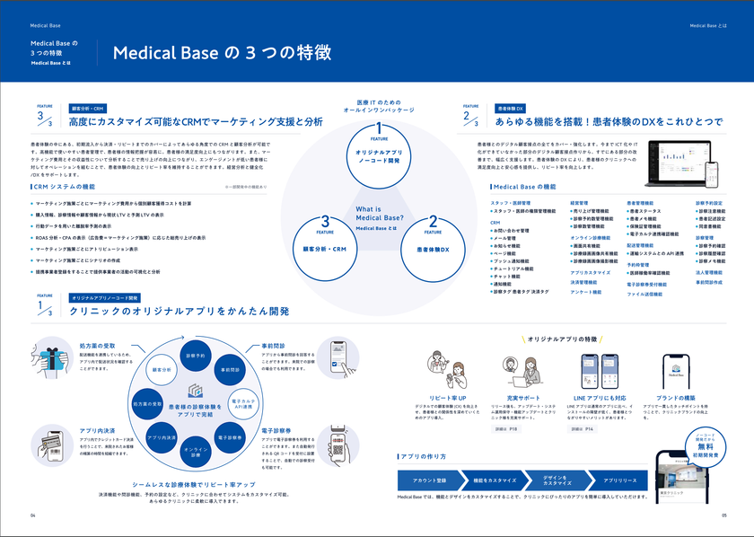 「Medical Base」では、CRMシステムのさらなる利便性向上を目指し、クリニックと患者様のための医療DXを推進する取り組みを進めてまいります。
