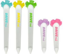 発売開始時からSNSを中心に話題沸騰中のDRIVE TEE(R)。日本のゴルフシーンをよりよくするために生まれた日本生まれのゴルフティーです。様々なゴルファーからのフィードバックをすぐに商品に生かし反映し常にゴルファーが求める距離、方向性、安定性、デザイン性、全てをより良く様々な視点からゴルフファンが増えたらとの思いで作られた花びら型ゴルフティーです。ご使用いただくと、その良さが実感いただけます。