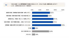 一方で、比較的新しい「360度評価」や、企業理念・信念に沿った行動を評価する「価値観評価」を導入する企業は少数にとどまっています。企業の人事評価は、いまだ新しい方式の導入には慎重である実態が浮かび上がりました。