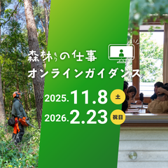 「オンライン開催により、全国の多くの方に林業の仕事の魅力を伝えることができると期待しています。各地の相談員が皆さまをお待ちしております。ぜひお気軽にご参加ください。」