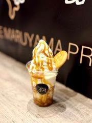 ジャージー牛乳を使ったソフトに、焦がしバターのキャラメルソースがとろり。