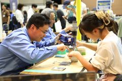 来場は無料です。今年は企業の展示及び販売に加え、子どもを対象とした地元企業によるモノづくり体験ブース、大阪総合保育大学短期大学部による地元企業との商品開発「好きになろうプロジェクト」の発表会を行います。食品サンプルのパイオニア株式会社いわさき、きなこと七味で有名な株式会社向井珍味堂、受賞やメディア出演が多いみどり製菓株式会社など、体験ブースを含めて地元企業34社が出展。