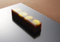 羊羹の上部はつや寒天で固め、栗の色と姿を見た目を美しいままに仕立てました。