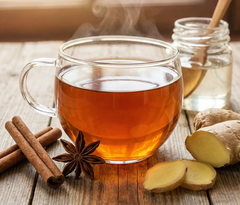 熱湯250ml、シナモンパウダー小さじ1/3~1/2、ショウガスライス2~3枚(またはチューブ1~2cm)、バニラエッセンス1~2滴、オリゴ糖小さじ1~2