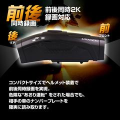 コンパクトサイズでヘルメット装着で前後同時録画を実現。危険なあおり運転をされた場合でも、相手の車のナンバープレートを確実に読み取ります。