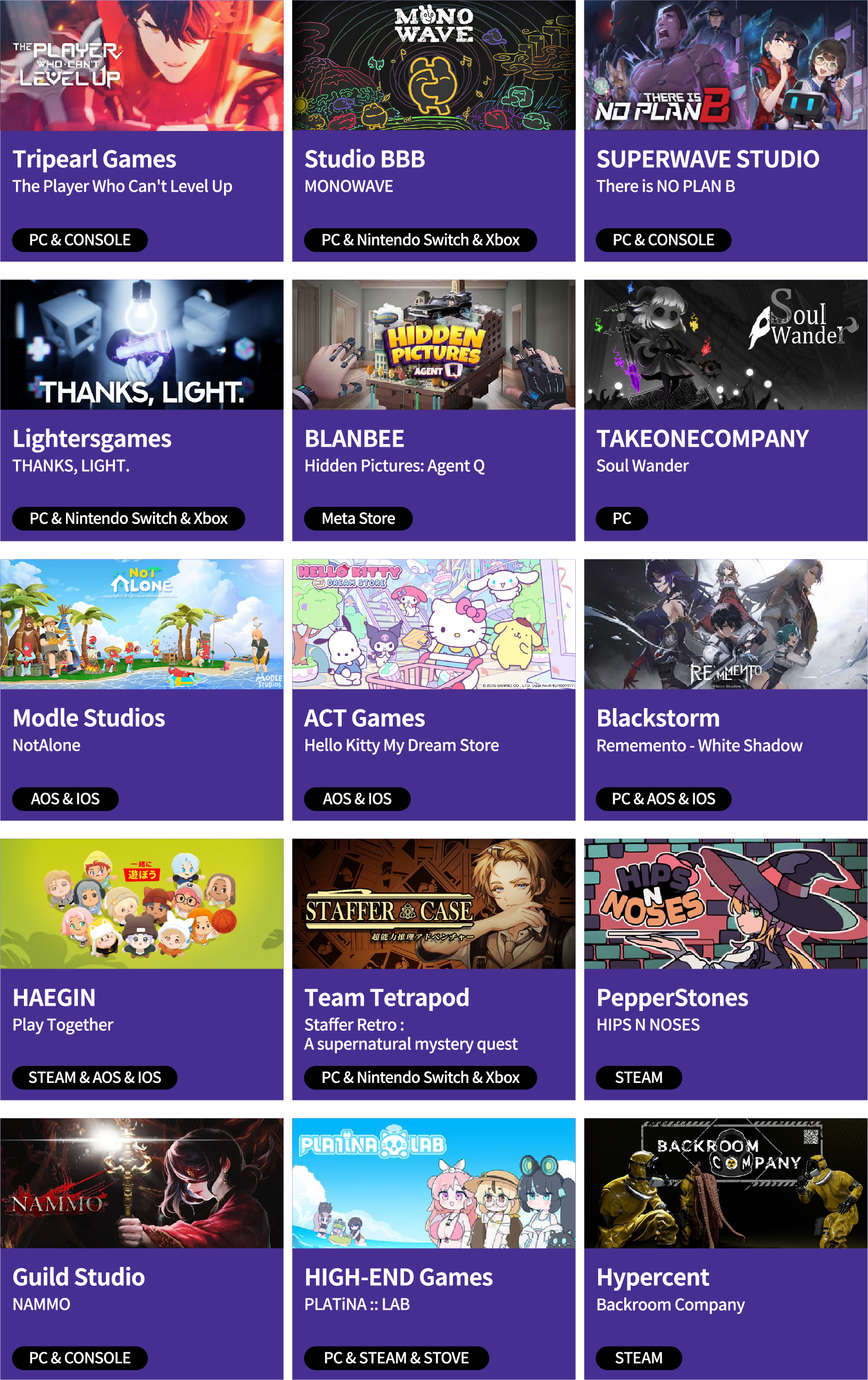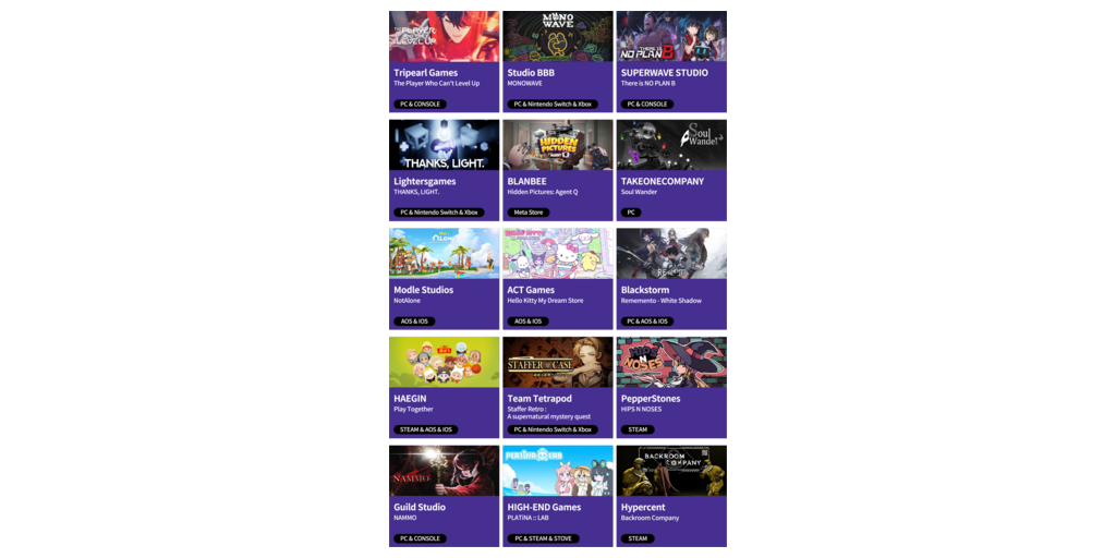 今年の出展企業に選ばれた15社は、モバイル、PC、コンソール、VRなど、幅広いプラットフォームにわたるタイトルを擁し、韓国で最も有望な人材を結集させています。