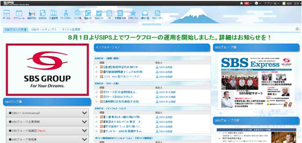 SBSグループは、コーポレートガバナンスの強化とグループ横断の情報共有・活用を目的に、 新しいグループウェア「SIPS(シップス:SBS Information Portal Site)」を4月に導入、 8月からワークフローの運用を開始し、全面稼働しましたのでお知らせいたします。