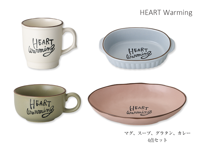 ●HEART Warming 食器4点セット(マグ、スープ、グラタン皿、カレー皿)