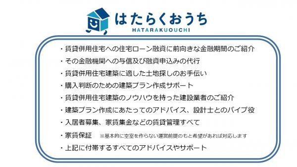 事業内容 : 賃貸併用住宅「はたらくおうち」専門企業として下記の事業を行う