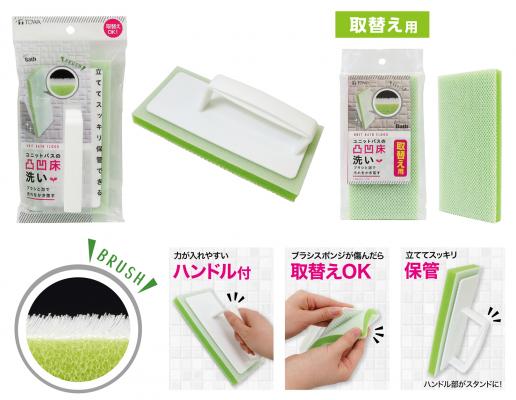 東和産業株式会社(本社:和歌山県海南市、代表取締役:吉田昌弘)は、ユニットバスの凸凹床をしっかり洗える「ユニットバス用ブラシスポンジ ハンドル付」と「ユニットバス用ブラシSG ハンドル付取替え」を2019年3月21日に発売しました。