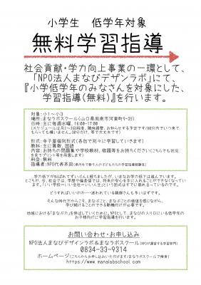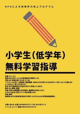 NPOによる地域学力向上プログラム「小学生(低学年)無料学習指導」、 2019年5月より、山口県周南市にて開講!!