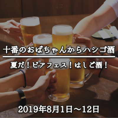 十番のおばちゃんからハシゴ酒実行委員会(所在:東京都港区、実行委員長:エクトル・ペレス)は、2019年8月1日~12日までの期間限定で、お得にハシゴ酒と、麻布グルメを堪能できるイベント、『十番のおばちゃんからハシゴ酒』の第3弾を、東京・麻布十番にて開催いたします。