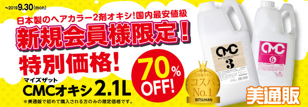 プロ向け美容材料の通信販売サイト「美通販」が、「新規会員様限定!CMCオキシ70%OFF!」キャンペーンを開催!