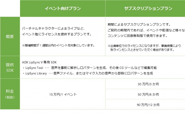 ■バーチャルキャラクターコンテンツ向け ADX LipSyncの料金プランを公開