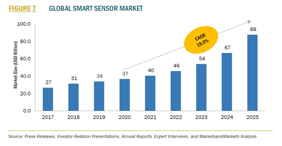 スマートセンサー市場-2025年までに880億米ドルに達すると予測