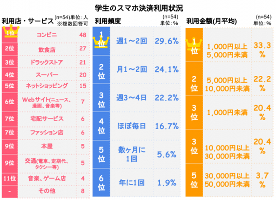 調査対象 :全国学生スマホ決済利用者54人