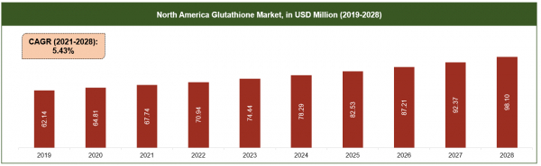 さらに、それはいくつかの食事上の利点のために多くの食品および組成物に使用されており、これは今後数年間でグルタチオンの需要を増加させると予想されています。グルタチオンの世界的な需要は、その免疫増強特性と肝臓の解毒剤としての機能により、さらに高まると予想されます。2019年、世界のグルタチオン市場は192.23 百万米ドルの市場価値を占め、2021ー2028年の予測期間中に5.93%のCAGRで成長すると予想されています。