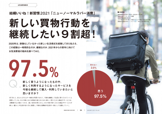 この1年間、女性消費者たちは、コロナ禍を乗り越えるために、様々な商品やサービスを新しく生活に取り入れてきました。今月号では、来年以降も増加し続けるであろう、コロナ禍で取り入れた新生活や新習慣のスタイルを愛する「ニューノーマルラバー」たちの消費行動に注目しました!