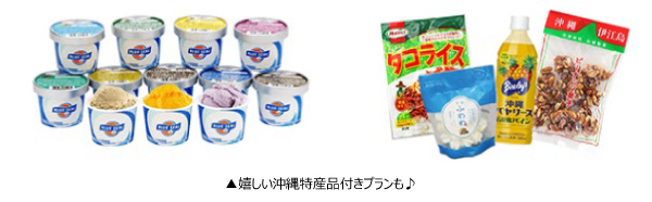 沖縄の特産品が手元に届くコースがあるのも嬉しいポイントです。ブルーシールアイスやタコライス、石垣島パインジュース、宮古島 雪塩ふわわ、ピーナッツ菓子をご自宅へお届け。ブルーシールアイスを食べながら親子で楽しく沖縄離島を感じていただけます。普段とはひと味ちがう、素敵なおうち時間を提供いたします。